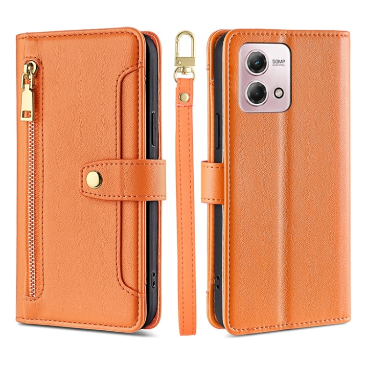 Funda de Cuero para Motorola Edge 40 Neo 5G Lite con Textura de Oveja y Cremallera Cruzada (Naranja)