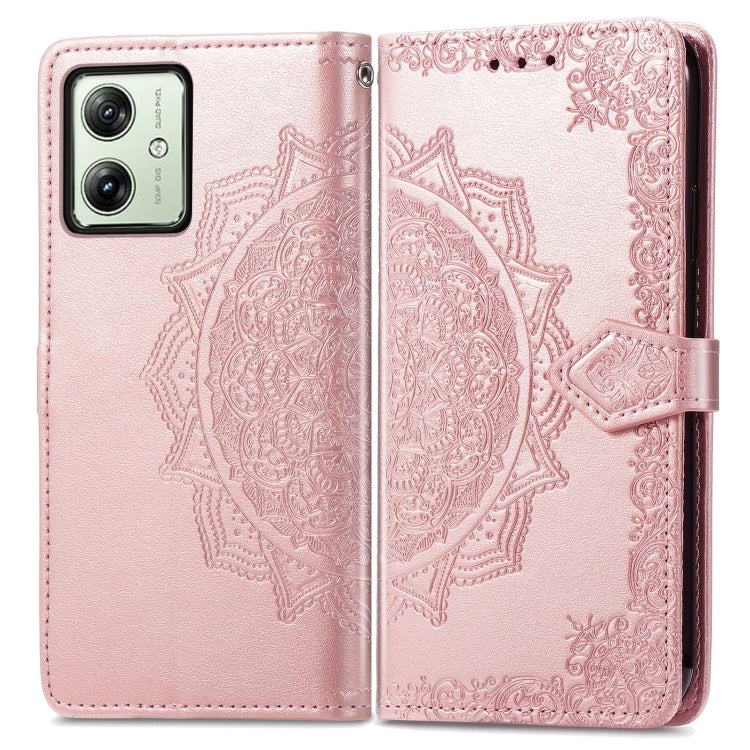 Funda para Motorola G54 5G de Cuero con Relieve de Flor de Mandala (Oro Rosa)