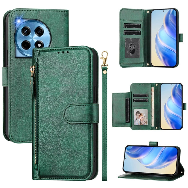 Funda de Cuero con Cremallera y Ranuras para Tarjetas para OnePlus 12 Global (Verde)