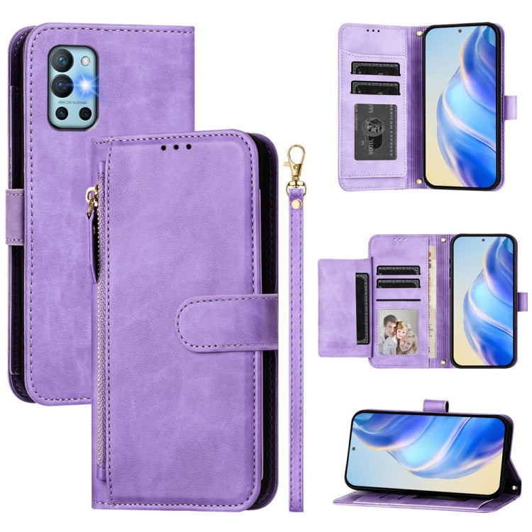 Funda de Cuero para OnePlus 9 con Cremallera y Ranuras para Tarjetas (Morado)