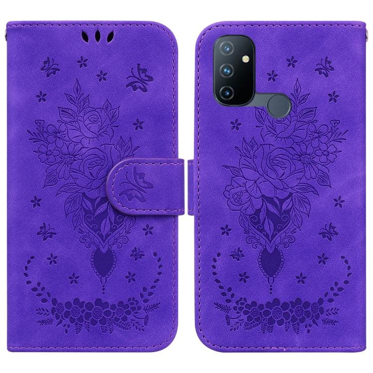 Funda para OnePlus Nord N100 Cuero en Relieve Butterfly Rose (Púrpura)