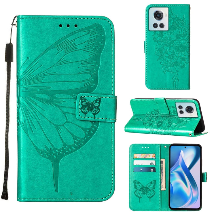 Funda para OnePlus Ace 5G de Cuero con Mariposa en Relieve (Verde)