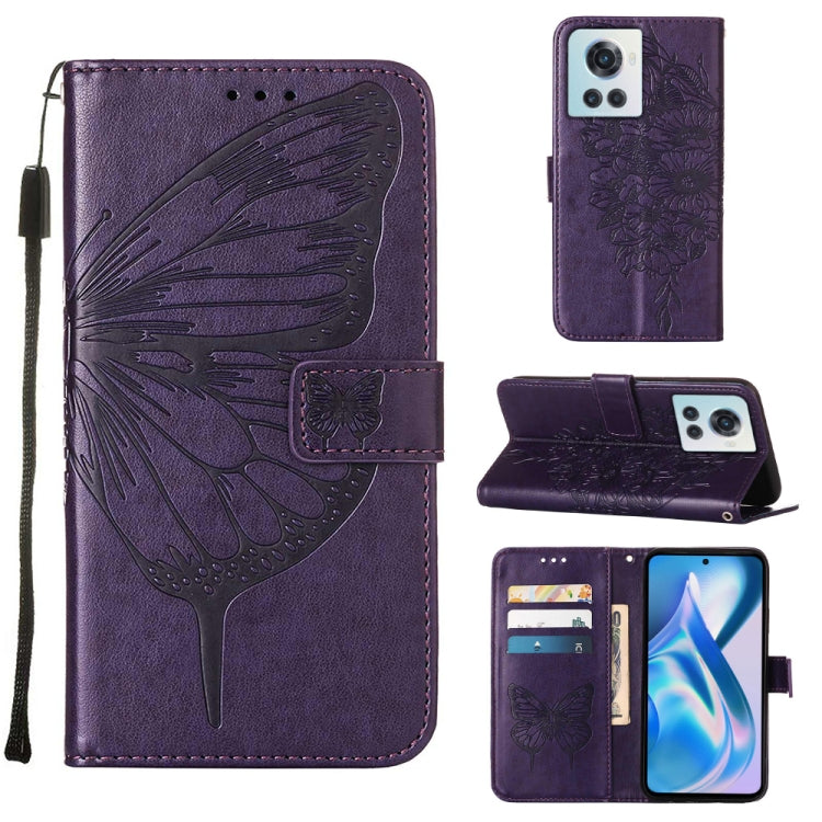 Funda de Cuero para OnePlus Ace 5G con Mariposa en Relieve (Púrpura)