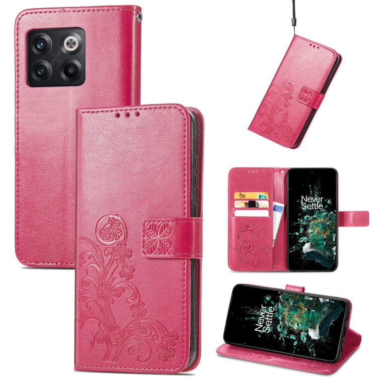 Estuche para OnePlus 10T de Cuero con Hebilla en Relieve y Cierre de Cuatro Hojas (Magenta)