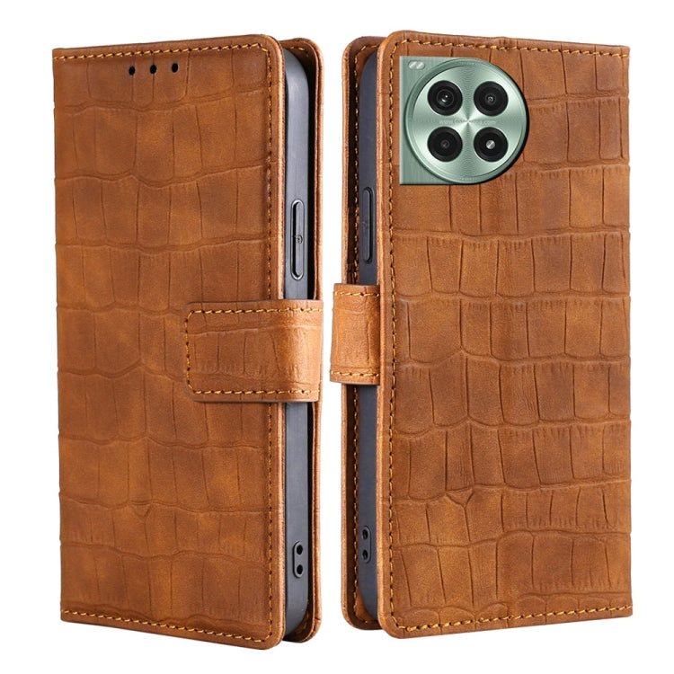 Funda de Piel para OnePlus Ace 3 Pro 5G con Cierre Magnético y Diseño Cocodrilo (Marrón)