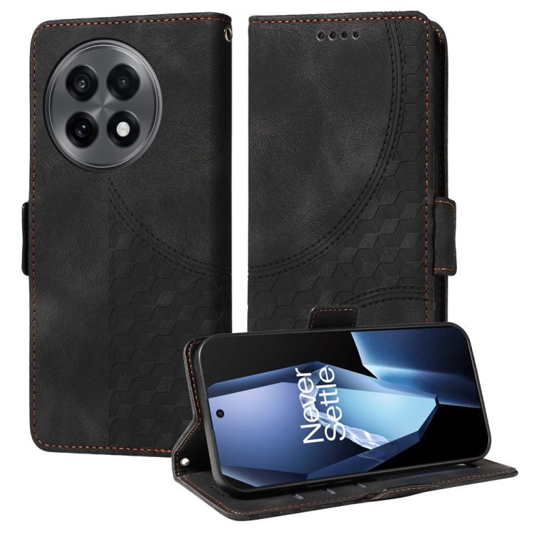 Funda de Cuero con Textura de Cuadrícula Rómbica para OnePlus 13R (Negra)