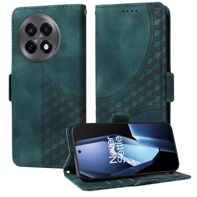 Funda de Cuero con Rombos en Relieve y Estrellas para OnePlus 13R/Ace 5/Ace 5 Pro (Verde)
