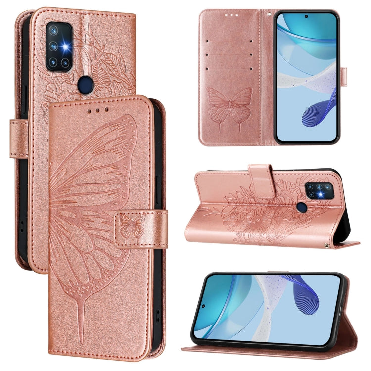 Funda de Cuero para OnePlus Nord N10 5G con Diseño de Mariposa en Relieve (Oro Rosa)