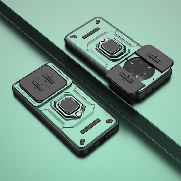 Funda Deslizante de TPU + PC a Prueba de Golpes con Soporte para Realme 14 Pro+ 5G (Verde)