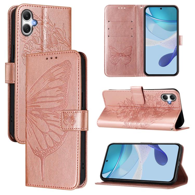 Funda de piel con diseño de mariposa en relieve para Samsung Galaxy A07 4G (oro rosa)