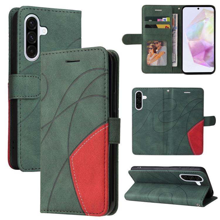 Funda de cuero con tapa y dos colores para Samsung Galaxy A56 5G (verde)