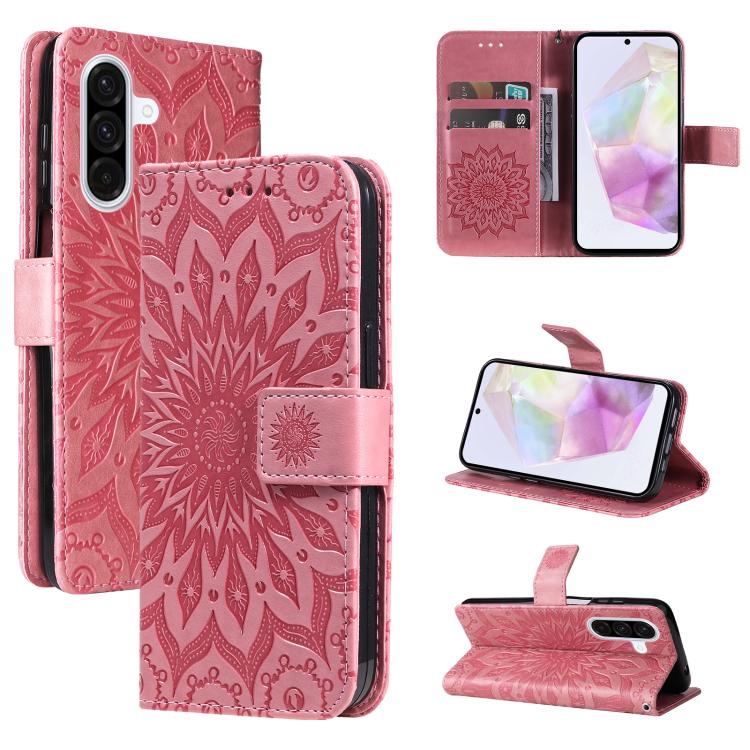 Funda de cuero con tapa y estampado de girasol en relieve para Samsung Galaxy A36 5G / M56 5G (rosa)