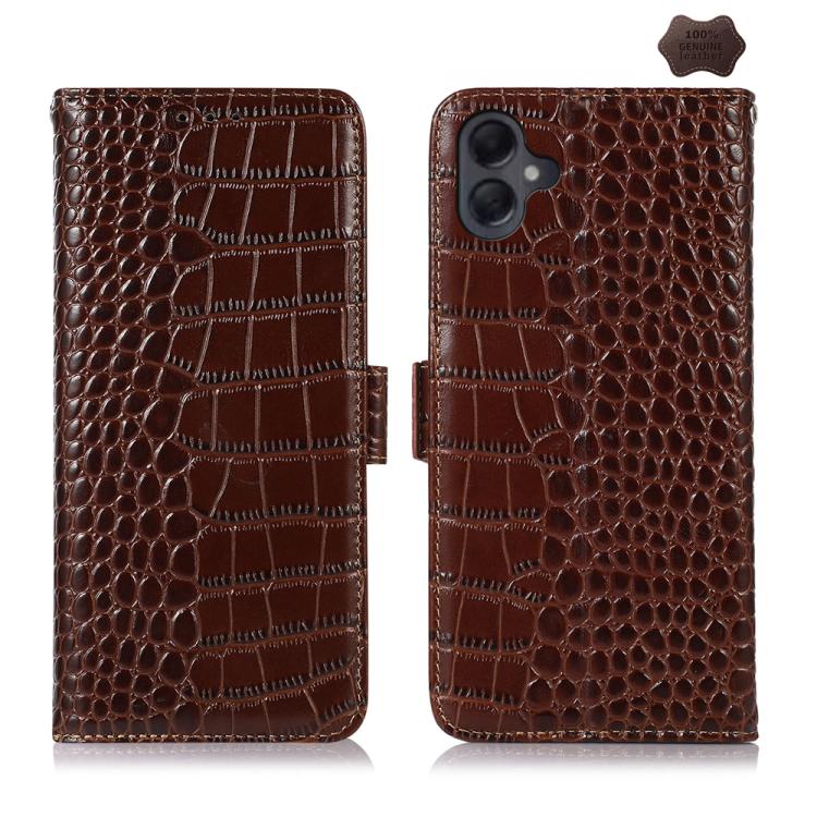 Funda magnética de cuero genuino con textura Crazy Horse y RFID para Samsung Galaxy A17 5G (marrón)
