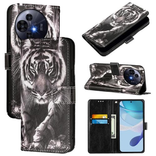Funda de Cuero Nxtpaper para Teléfono TCL 50 Pro (Tigre Blanco y Negro)
