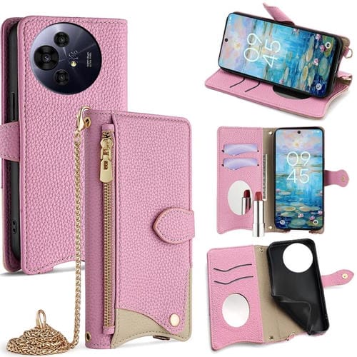 Funda de Cuero con Cadena Cruzada y Diseño de Cola de Pez para TCL 50 Nxtpaper y 50 Pro Nxtpaper (Rosa)
