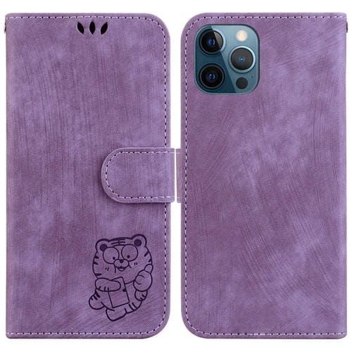 Funda para Teléfono Apple iPhone 12 Pro Max Cuero con Relieve Little Tiger (Púrpura)