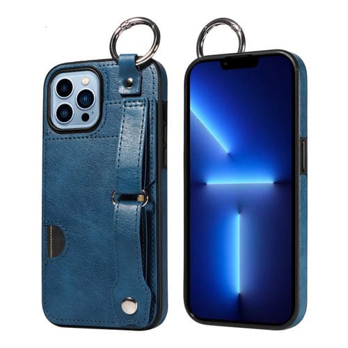 Funda para Teléfono iPhone 13 Pro Max con Anillo y Ranura para Tarjeta Textura de Pantorrilla (Rosa)