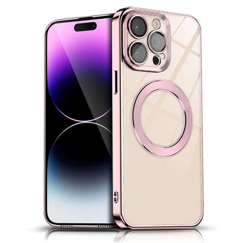 Caja de teléfono Magsafe para iPhone 13 Pro Max con textura de Cd Galvanizada (Rosa)
