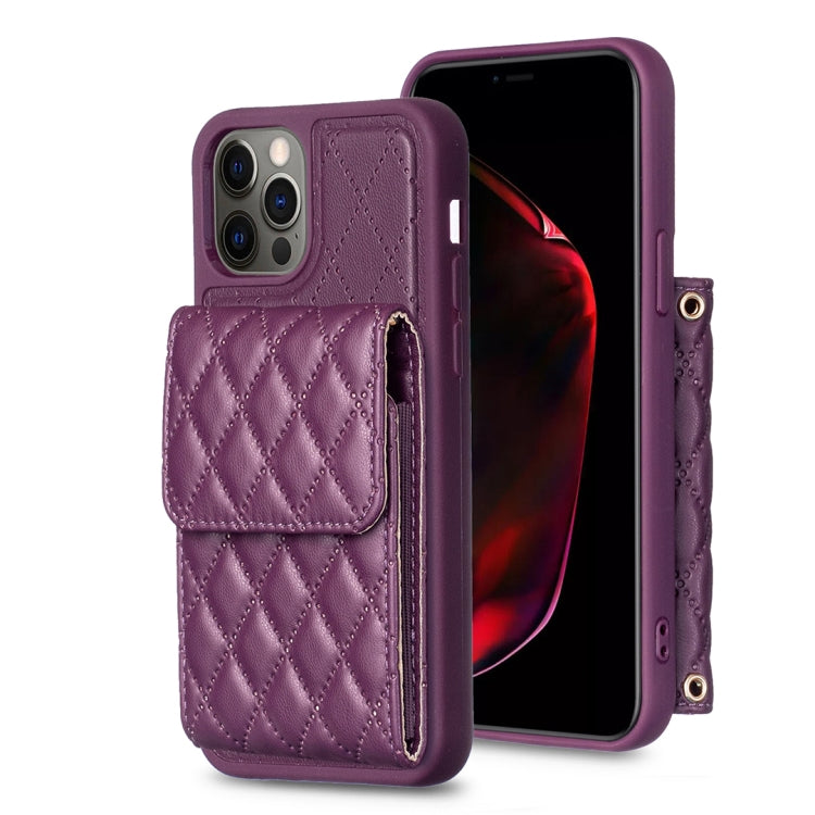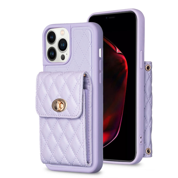 Funda para iPhone 13 Pro Vertical Wallet Rhombic Leather Phone Case (Púrpura)
