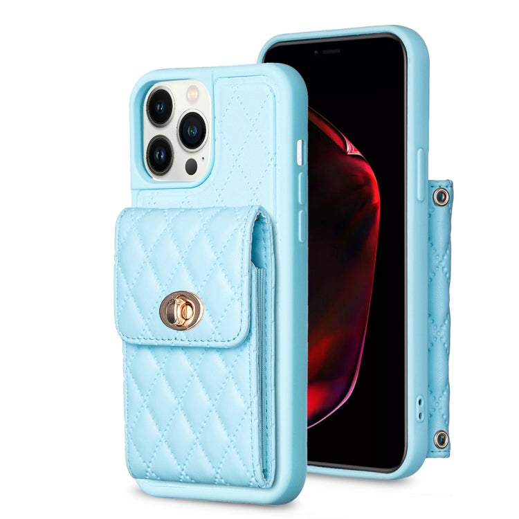 Funda para iPhone 13 Pro Vertical Wallet Rhombic Leather Phone Case (Azul)