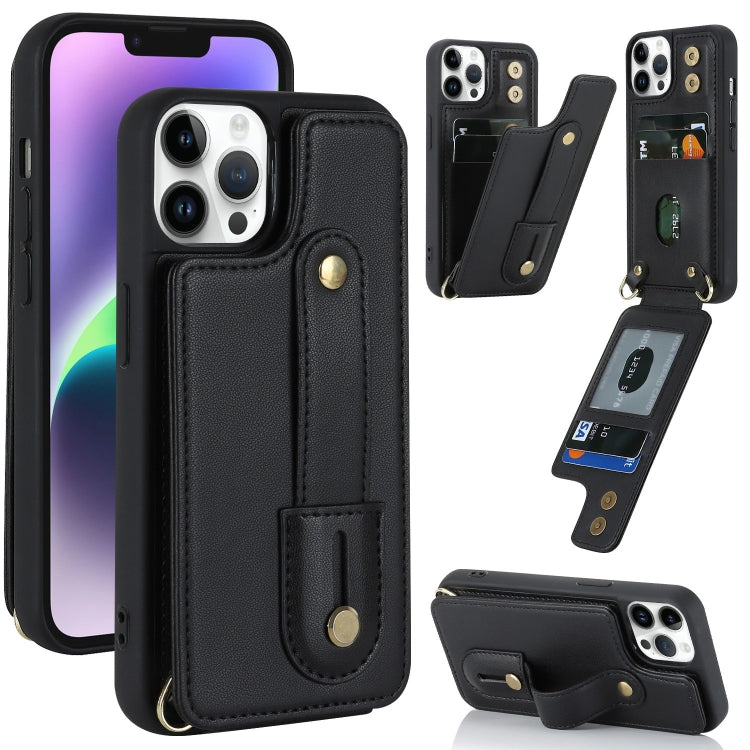 Funda para iPhone 13 Pro Wristband Vertical Flip Wallet Back Cover (Negro)
