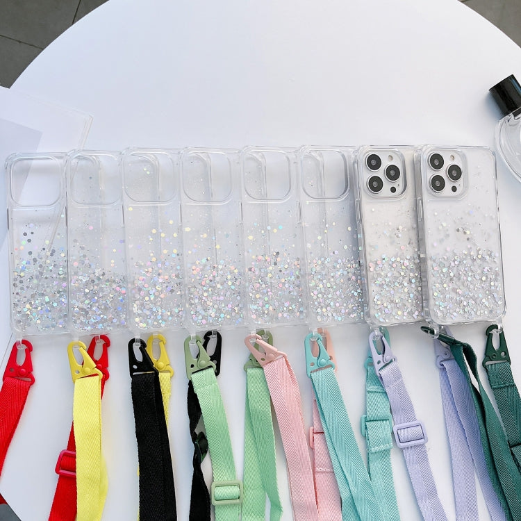 Funda para iPhone 13 Pro Lanyard Glitter Epoxy Clear Phone Case (Amarillo)