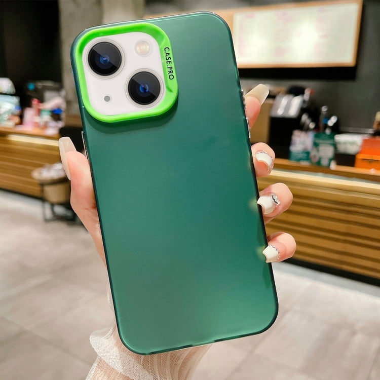 Caja de Teléfono TPU para iPhone 14 Marco de Lente Contraste de Color (Transparente + Verde)