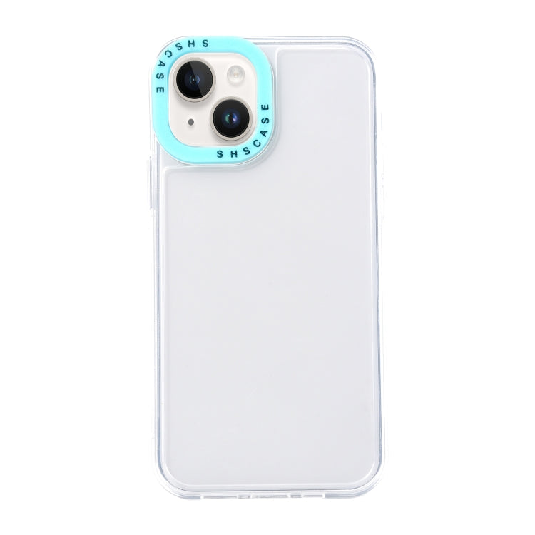Funda para iPhone 14 Marco de Lente Contraste Color Caja TPU (Transparente + Azul Cielo)