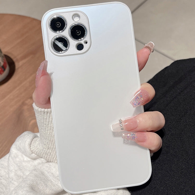 Estuche de Teléfono para iPhone 14 Vidrio Templado Esmerilado (Blanco)