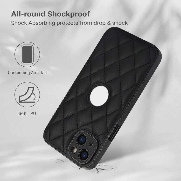 Funda para Teléfono iPhone 14 Contraportada de Cuero Rómbico (Negro)