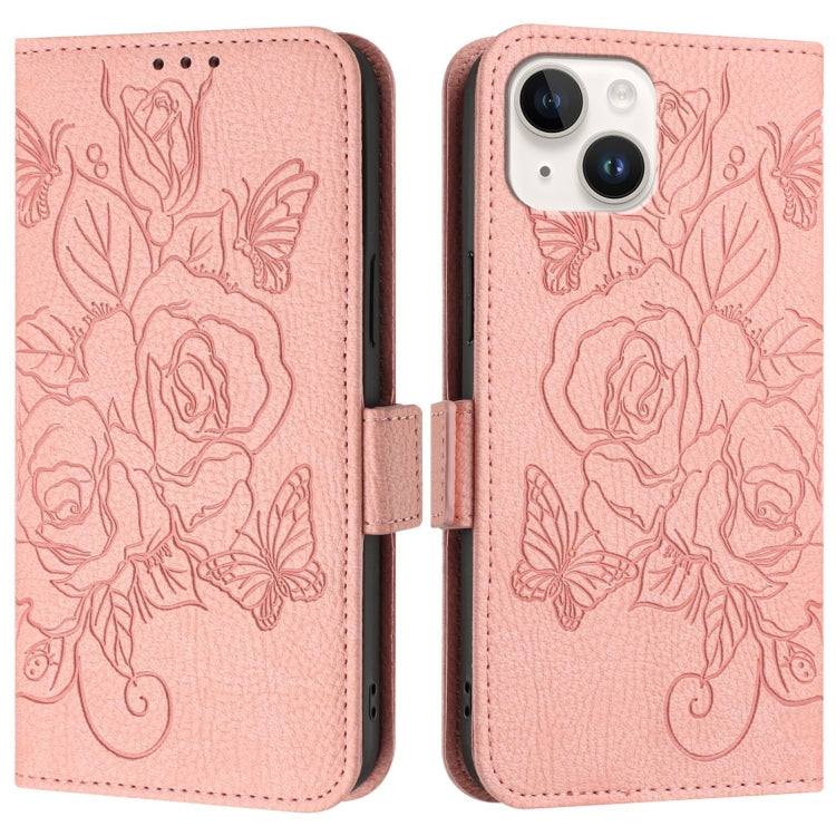 Funda para Teléfono iPhone 14/13 Cuero Antirrobo Rfid con Rosa en Relieve (Rosa)