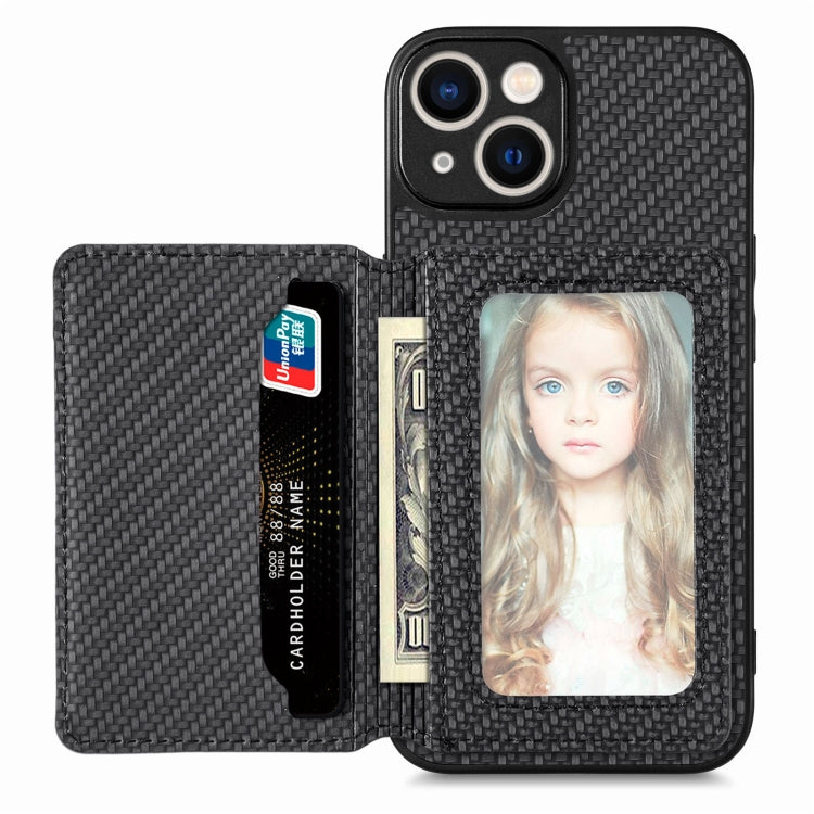 Caja de Teléfono para iPhone 14 con Bolsa de Tarjeta Magnética Fibra de Carbono (Negro)