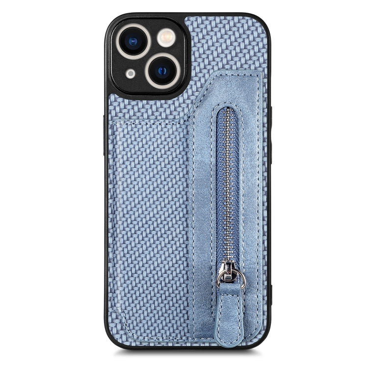 Funda de teléfono para iPhone 14 con cremallera y tapa horizontal de fibra de carbono (Azul)