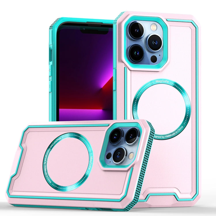 Funda para iPhone 14/13 Armor Two-Color Magsafe Magnetic TPU + PC (Azul + Rosa)