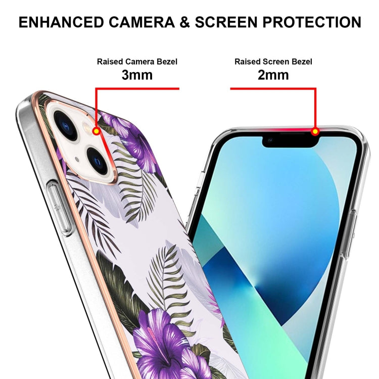 Estuche TPU para iPhone 15 Plus Galvanoplastia Patrón Imd a Prueba de Golpes (Flor Púrpura)