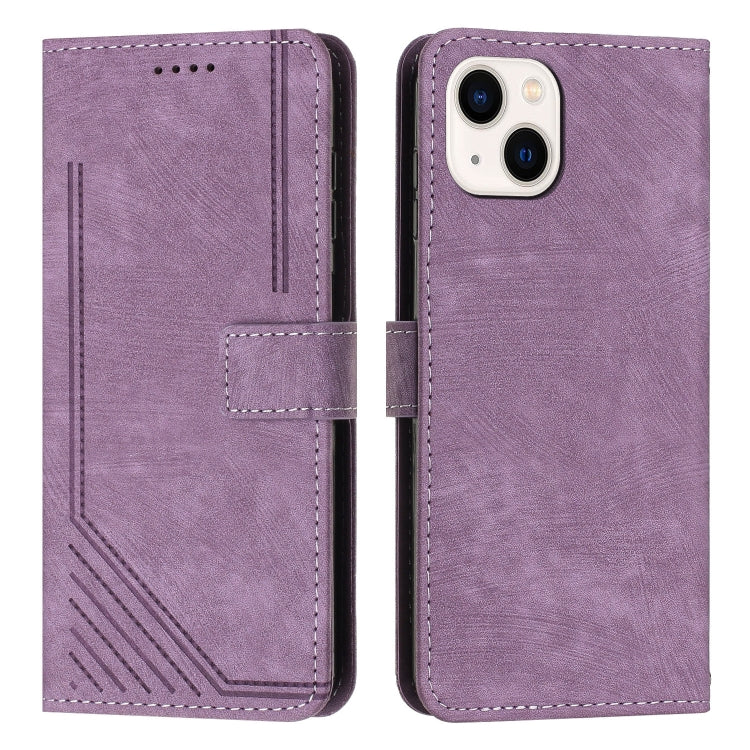 Funda de Cuero para iPhone 15 Plus Skin Feel Stripe Pattern con Cordón (Púrpura)