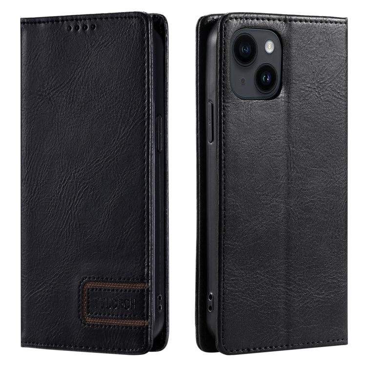 Funda de teléfono Ttudrch para iPhone 15 Plus con protección RFID cuero magnético textura retro (Negro)