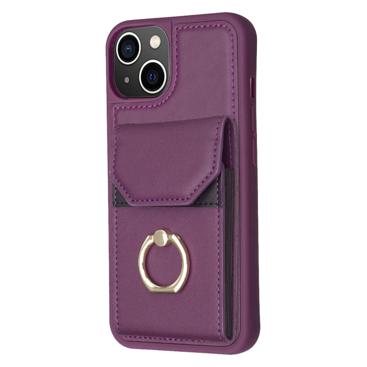 Funda para Teléfono iPhone 15 Plus Bf29 con Soporte para Anillo y Bolsa para Tarjeta (Púrpura)