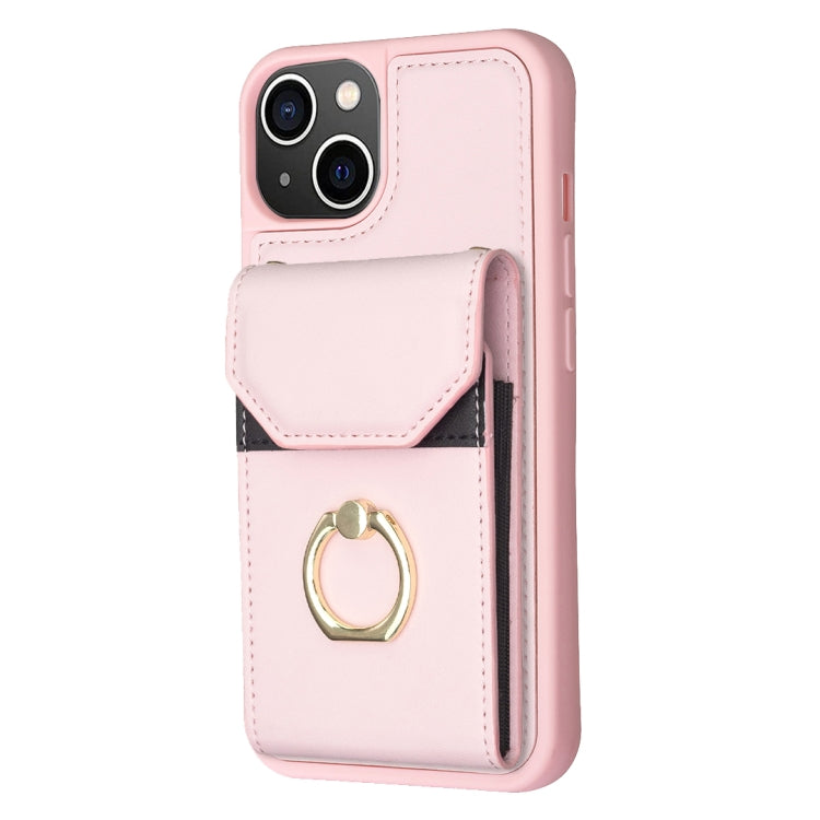 Funda para Teléfono iPhone 15 Plus Bf29 con Soporte para Anillo y Bolsa para Tarjeta (Rosa)