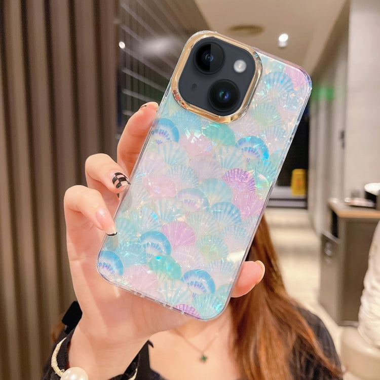 Funda para Teléfono iPhone 15 Plus PC + TPU Patrón Concha de Cristal (Azul Festoneado)