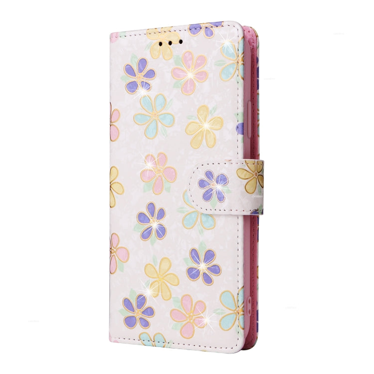 Funda de Cuero RFID para iPhone 15 Plus con Pintura Bronceadora (Flor Floreciente)