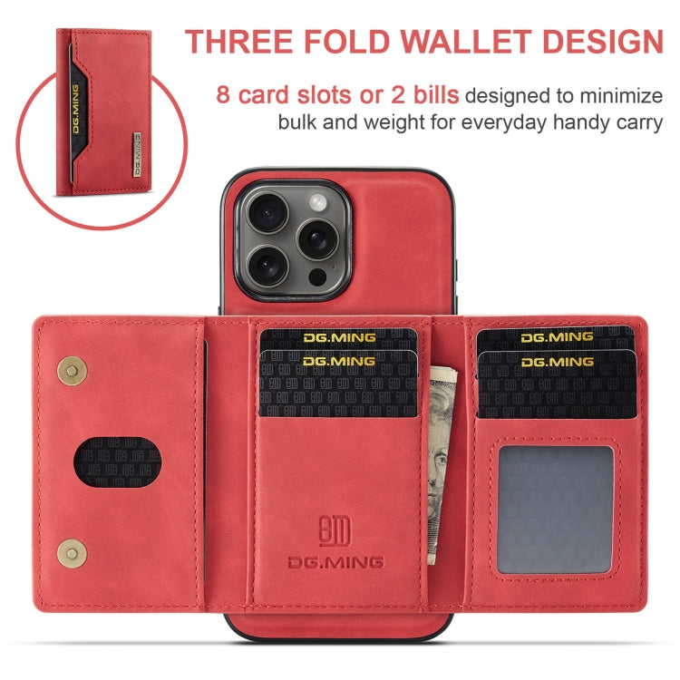 Funda de Cuero Dg.Ming M1 Series para iPhone 16 Pro Max con Billetera MultiTarjetas y 3 Pliegues (Rojo)