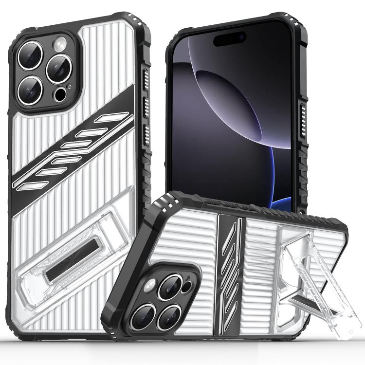 Funda hĂbrida TPU y PC con soporte para iPhone 16 Pro Max (Transparente y Negra)