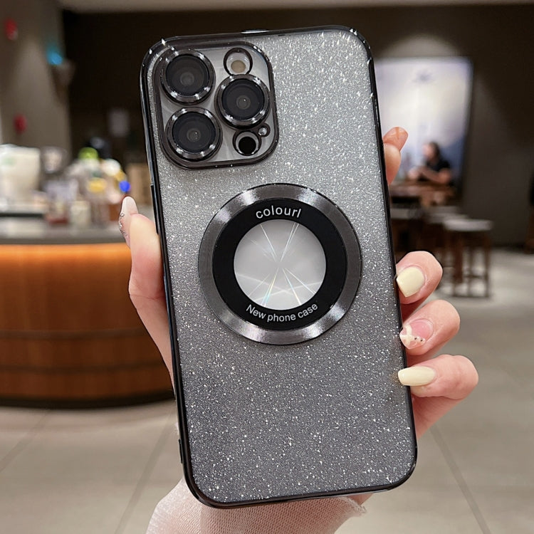 Funda de Teléfono TPU Galvanoplastia Purpurina Degradada Magsafe iPhone 16 Pro Max (Negra)