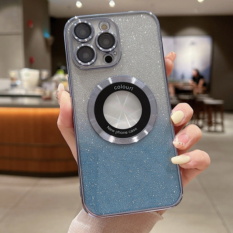 Funda de Teléfono TPU con Galvanoplastia y Purpurina Degradada Magsafe para iPhone 16 Pro Max (Azul)