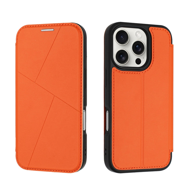 Funda de Cuero con Ranuras para Tarjetas Rfid y Carcasa Magnética para iPhone 16 Pro Max (Naranja)