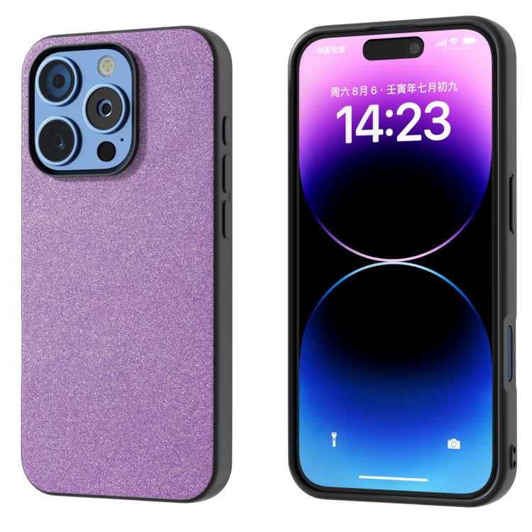 Funda para iPhone 16 Pro Max Marco Negro Purpurina a Prueba de Golpes (Morado)