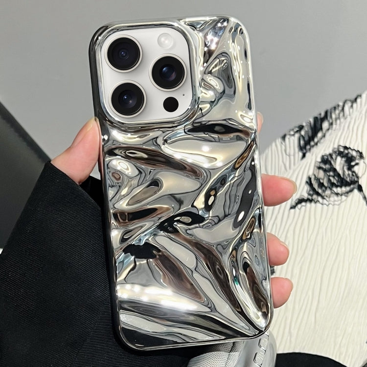 Funda TPU Pintura Galvanizada Ondas de Agua para iPhone 16 Pro (Plata Brillante)