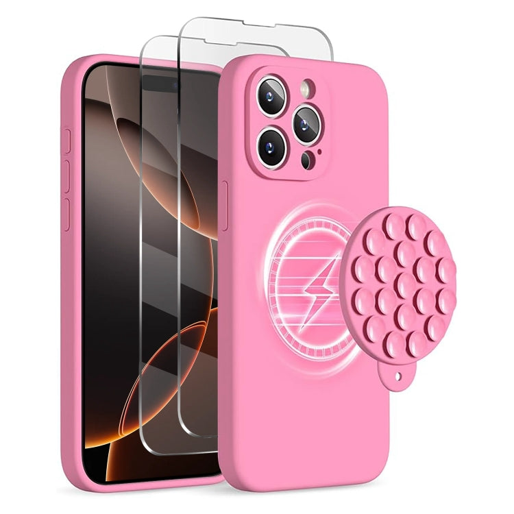Funda de Silicona con Ventosa Magsafe para iPhone 16 Pro con Película de Pantalla (Rosa)