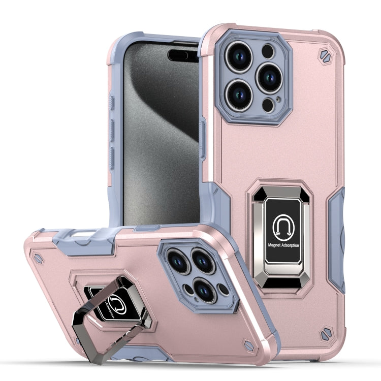 Funda Protectora para iPhone 16 Pro Antideslizante Prueba de Golpes Soporte de Anillo (Oro Rosa)